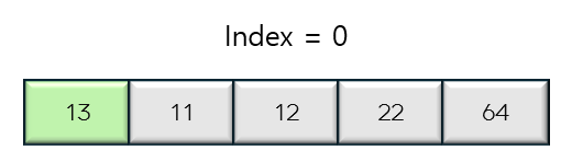 // 현재 위치의 원소와 가장 작은 원소를 교환