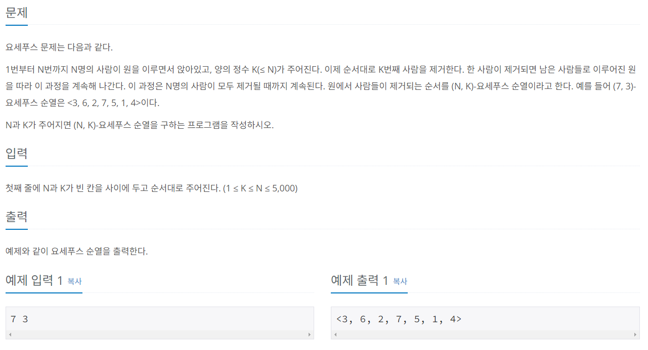 while 문을 통해 큐가 비어있지 않을 때까지 반복하면서 index 값을 증가시키며 K와 같은지 비교합니다. 만약 K와 같다면 큐의 원소를 리스트에 추가하고, index를 다시 1로 초기화합니다. 만약 같지 않다면, 큐의 원소를 뒤로 보내어 계속 반복하는 방식으로 문제를 해결하였습니다.