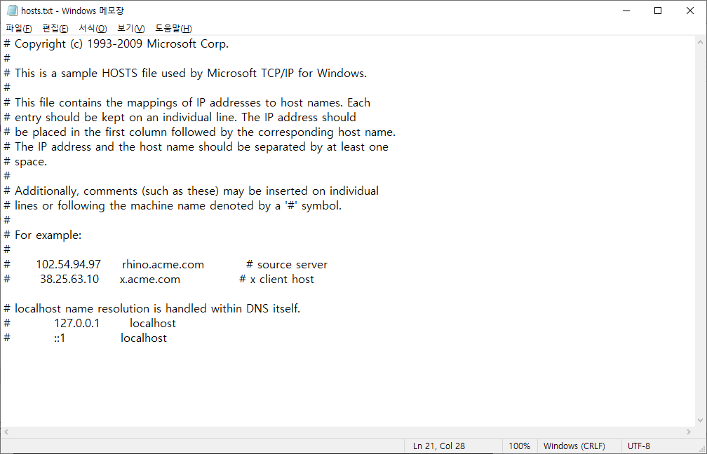 - 호스트 파일 확인: