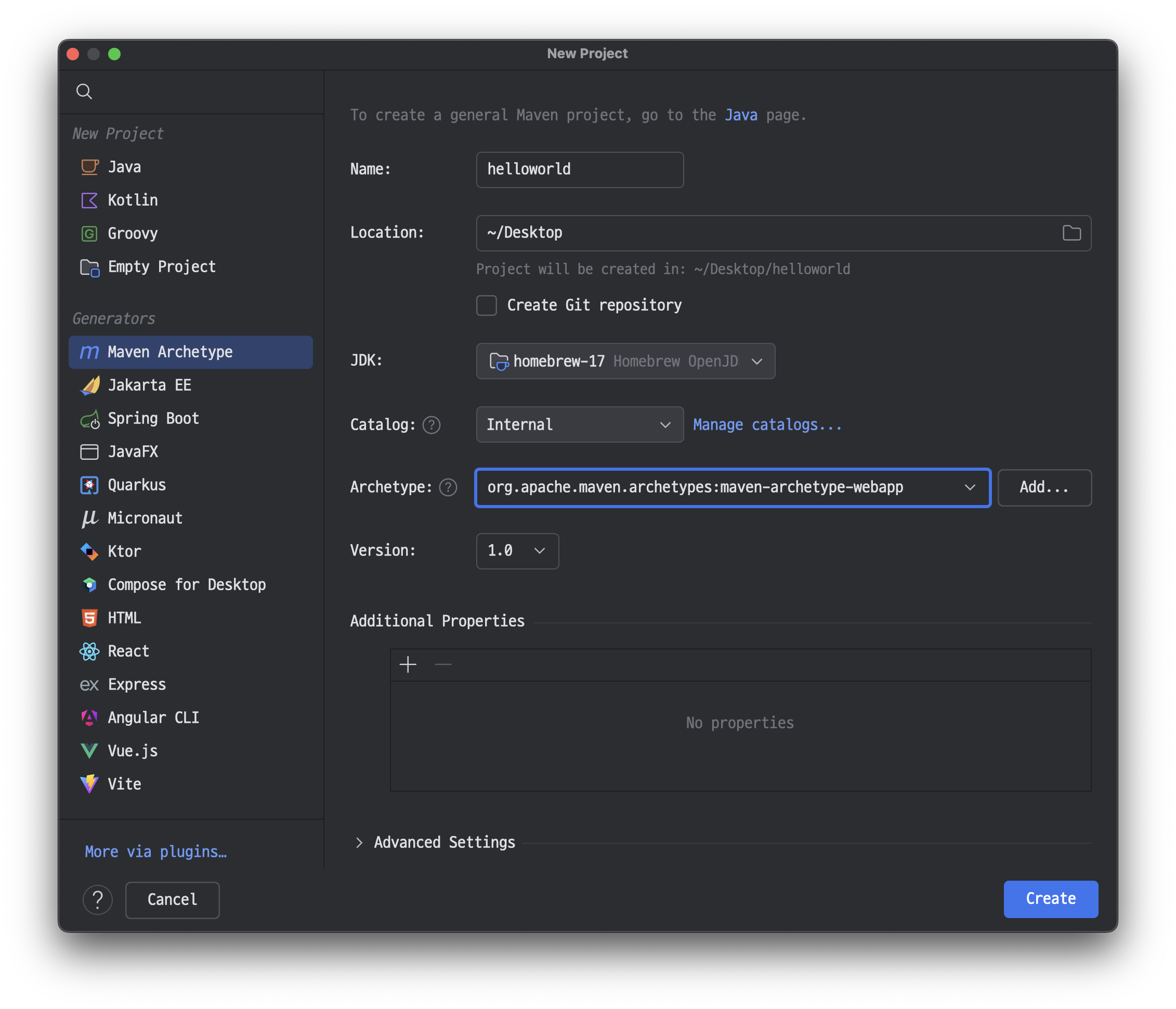 목표 : 맥 환경에서 IntelliJ IDEA를 사용해 Maven과 Tomcat을 이용하여 "Hello World"를 출력하는 간단한 웹 애플리케이션 생성