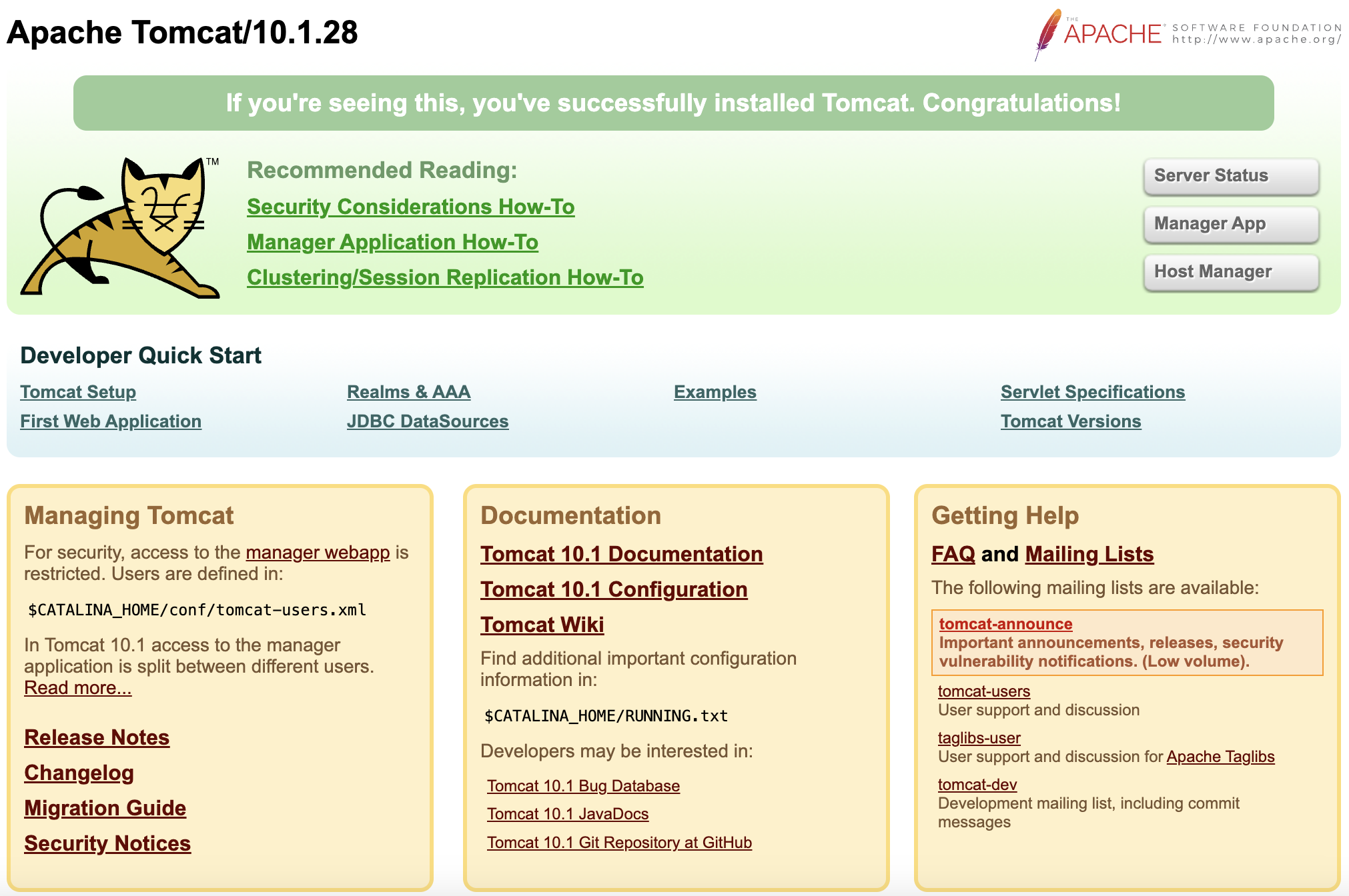 `brew install tomcat` 는 최신 버전의 톰캣을 설치한다. 그 아래 명령어는 버전을 명시하여 원하는 버전의 톰캣을 설치할 수 있다.