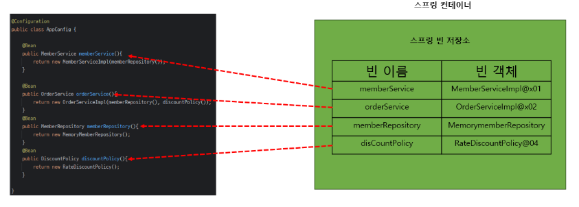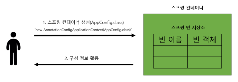 - 스프링 컨테이너는 파라미터로 들어온 설정 클래스 정보를 활용하여 스프링 빈을 등록한다.