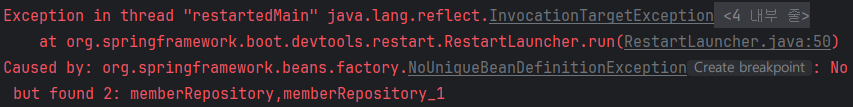 - 의존관계 주입시 타입으로 빈을 조회하기 때문에 하위 타입이 2개 이상 조회되면 예외가 발생한다.