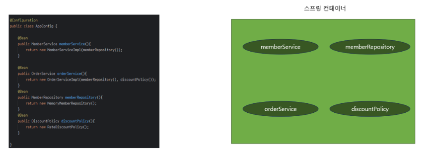 // AppConfig를 통해 객체 생성 및 의존성 주입